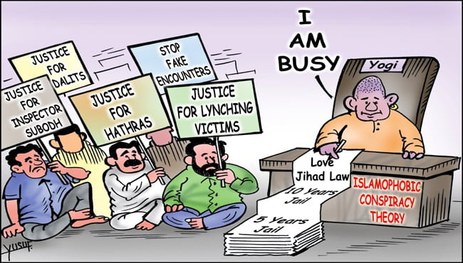 Sign in Welcome! Log into your account your username your password Forgot your password? Get help Password recovery Recover your password your email A password will be e-mailed to you. Cartoon Mirror December 1, 2020 Love Jihad Law English Share FacebookTwitterPinterestWhatsApp Tagscartoon mirrorjustice for dalitsjustice for hathrasjustice for inspector subodhjustice for lynching victimslawlove jihadmodistop fake encontersup governmentyogi adityanath Latest Muslim Double Standards April 8, 2026 0 Hindi Illicit Relationship March 29, 2026 0 Hindi Court March 29, 2026 0 Hindi Atmanirbhar Bharat March 16, 2026 0 Newsletter I want in Don't miss Muslim Double Standards April 8, 2026 0 Hindi Illicit Relationship March 29, 2026 0 Hindi Court March 29, 2026 0 Hindi Atmanirbhar Bharat March 16, 2026 0 Hindi Happy Holi March 16, 2026 0 Cartoon Mirrorhttps://www.cartoonmirror.comI am Yusuf Munna founder of Cartoon Mirror , freelance cartoonist and sub editor at Kanti newspaper. Former cartoonist at Awam e Hind , The Siasat Daily, Two Circle, The Milli Gazette. Double Standards Cartoon Mirror - April 8, 2026 Read more Illicit Relationship Cartoon Mirror - March 29, 2026 Read more Court Cartoon Mirror - March 29, 2026 Read more LEAVE A REPLYLog in to leave a comment